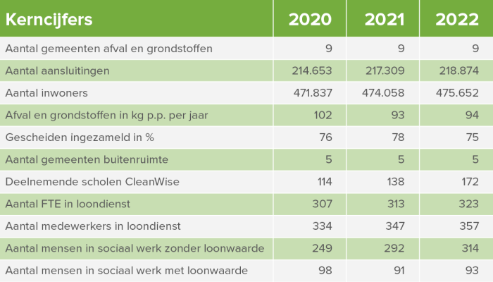 Vijf van de negen gemeenten produceerden minder dan 100 kilo restafval per inwoner, waarmee zij de landelijk veel gebruikte doelstelling van 100 kg restafval per inwoner opnieuw hebben gehaald. Vier gemeenten zaten daarboven. Gemiddeld nam in de hele regio het restafval exclusief grofvuil per inwoner licht toe van 76 kg in 2021 naar 77 kg in 2022. Voor grofvuil steeg dit van 17 kg in 2021 naar 17,5 kg in 2022, bij elkaar opgeteld afgerond op 94 kg.